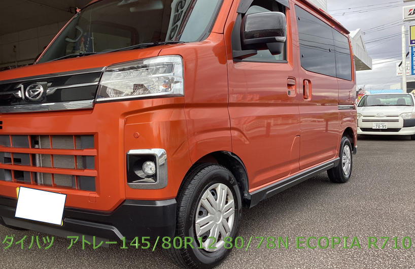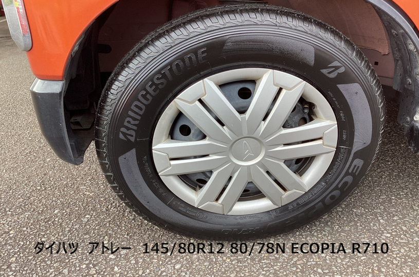 ダイハツ タフト 2025年11月7日 ミスタータイヤマン高鍋店です(^_-)-☆ オンラインストアーでご購入頂きありがとうございます。 ダイハツ タフト 145/80R12 80/78N R710 4本 交換作業させて頂きました(^^)/ 空気圧調整、ローテーション等お気軽にご連絡下さい。