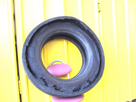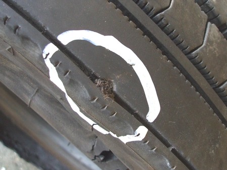 まさかトラック用タイヤでショルダー部に外面修理をしているとは、思いもかけなかった。
