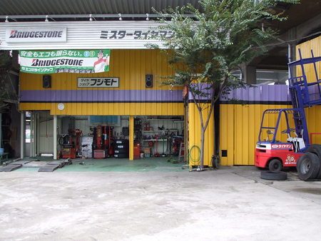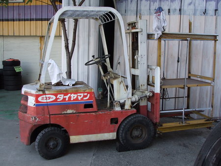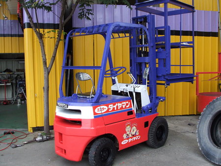 作業に使った、フォークリフトも「タイヤマンカラー」に塗り替えました。