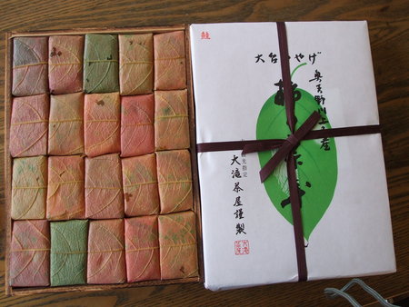 包装紙をあけると、葉の紅葉がとても綺麗で、食べるのがもったいない、感じです。
