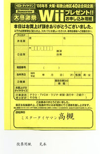 「あんな、、うちの店で、タイヤを買ってくれたお客さんがWiiが当たってくれたらと思って祈ったんや」