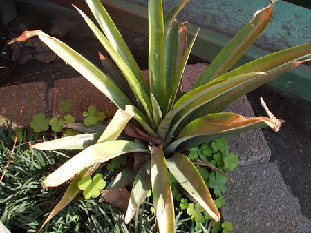 パイナップルの周りの土の中に、「寒肥」の鶏糞をいっぱい、埋めてやりました。