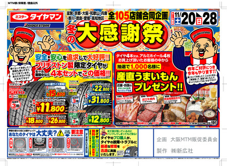近畿地区のミスタータイヤマン合同企画で、11月20日~28日まで、催します。