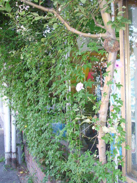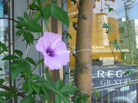 節電と美観を兼ねて、宿根あさがおを、店のショーウインドウに植えていましたが、