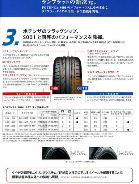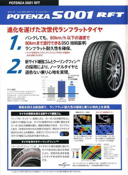 ランフラットタイヤ「ポテンザS001」を、もう少し詳しく説明したいと思います。