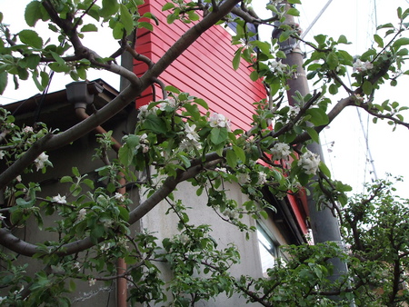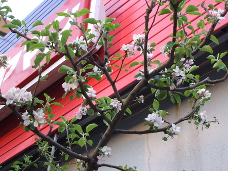 毎年、今頃に3本あるリンゴがいっせいに花咲くのですが