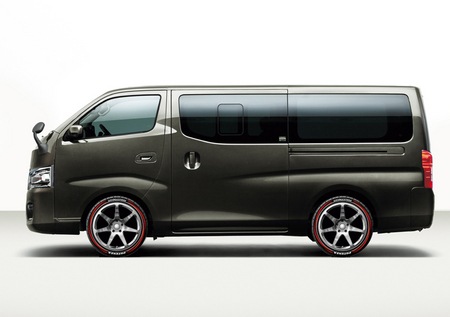 画像は新型キャラバンにブリヂストンのカラータイヤをはめ込み加工しました。