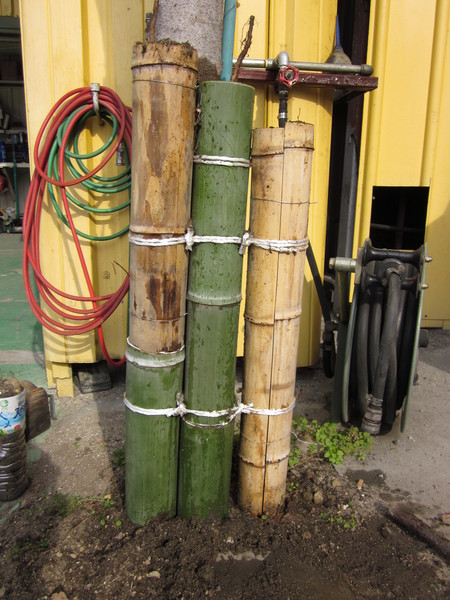 今度は竹を継ぎ足して長くし、山芋も1本しか植えないようにやり直しました。