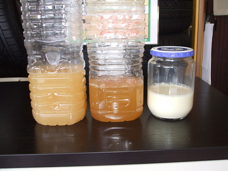 先ず、お米の一番目に洗った、トギ汁をペットボトルに入れ、1リッターあたりに小指ぐらいの