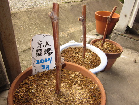 挿し木は閉園する京都大学「高槻農場」で分けてもらったブドウの枝を挿し木にしたものです。