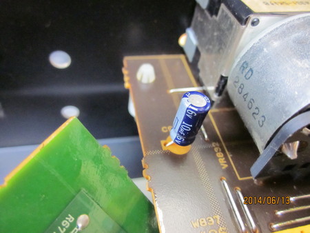 幸いなのが、取り外すコンデンサーの根っこの部分が、半田付けの間隔が広く取ってあり、素人でも何とかなりそうな感じです。