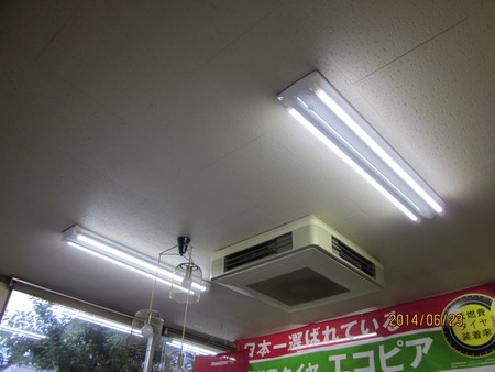 店内の蛍光灯や屋外の看板や作業場の水銀灯と白熱灯をすべてLEDに交換しました。