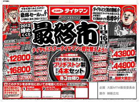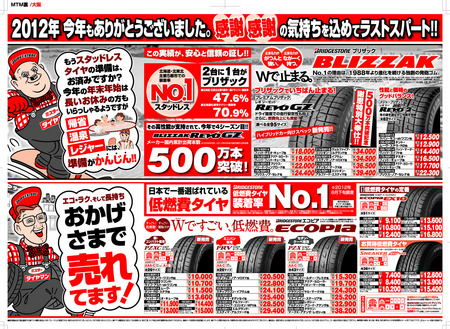 12月に入って、おれ達おとうさんの店「ミスタータイヤマン高槻」のタイヤの売り上げが