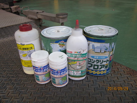 下地は部分補修ですませ、使った材料は、コンクリートのひび割れ補修用合成モルタル、