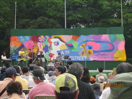5月3日4日の二日間で3日の日は良い天候に恵まれ、大勢の人たちが高槻に来られたのですが、4日の日は曇り時々雨の天候で、屋外での演奏が少し不安でしたが、やはりジャズファンは少々の雨などは、ぜんぜん気に留めず、前日と同じくらいの大勢の人たちが、各会場につめかけました。