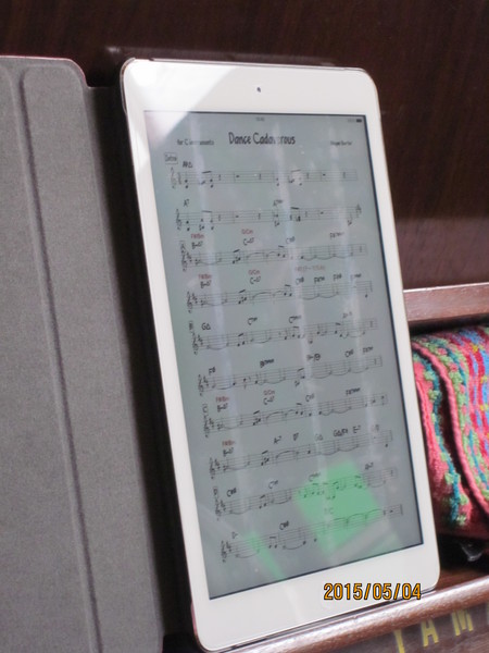 これでしたら、瞬時に譜面を取り出すこともでき、紙の五線譜のように風に飛ばされることもないので、