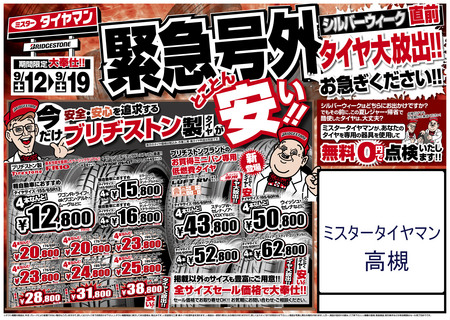 ぜひ、この機会に「ミスタータイヤマン高槻」にお寄りください。