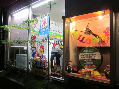 おれ達おとうさんの店「ミスタータイヤマン高槻」のショーウィンドーは西に向いています。