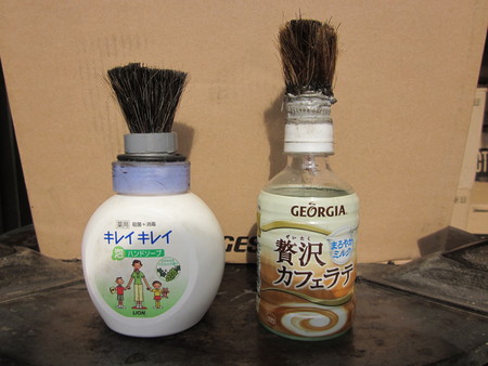 そこで、おれ達おとうさんが考案したのが、使い捨てのボトル容器にブラシを接着剤で取り付けたのです。