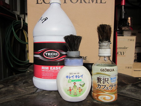 この自家製「ビードオイル刷毛」を用いることにより、常に新しい綺麗なビードオイルでタイヤビードを塗布することができ、また冬場でもビードクリームのように硬くなりません、ただ夏場において、乾燥が速いのが難点ですね、、