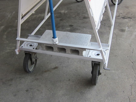 のぼりの竿立ては、大型トラックのいらなくなったナットを使い、重石はホームセンターで1個90円x2=180円で買ったので、