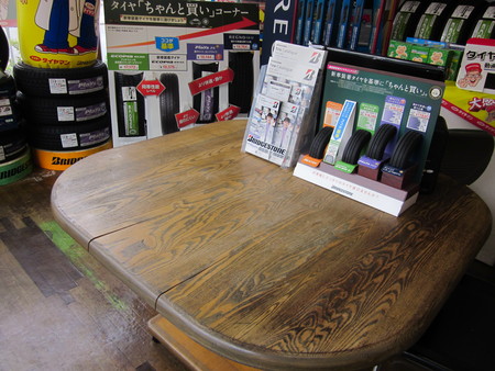 おれ達お父さんお店、「ミスタータイヤマン高槻」で使っているテーブルがあります。