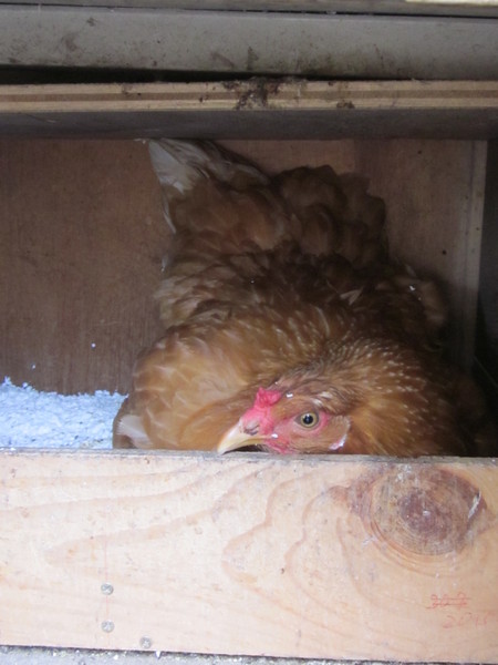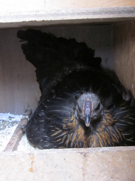 ところで、当店で飼育しているニワトリのアローカナ(交雑種)の雌鳥がようやく抱卵を始めました。