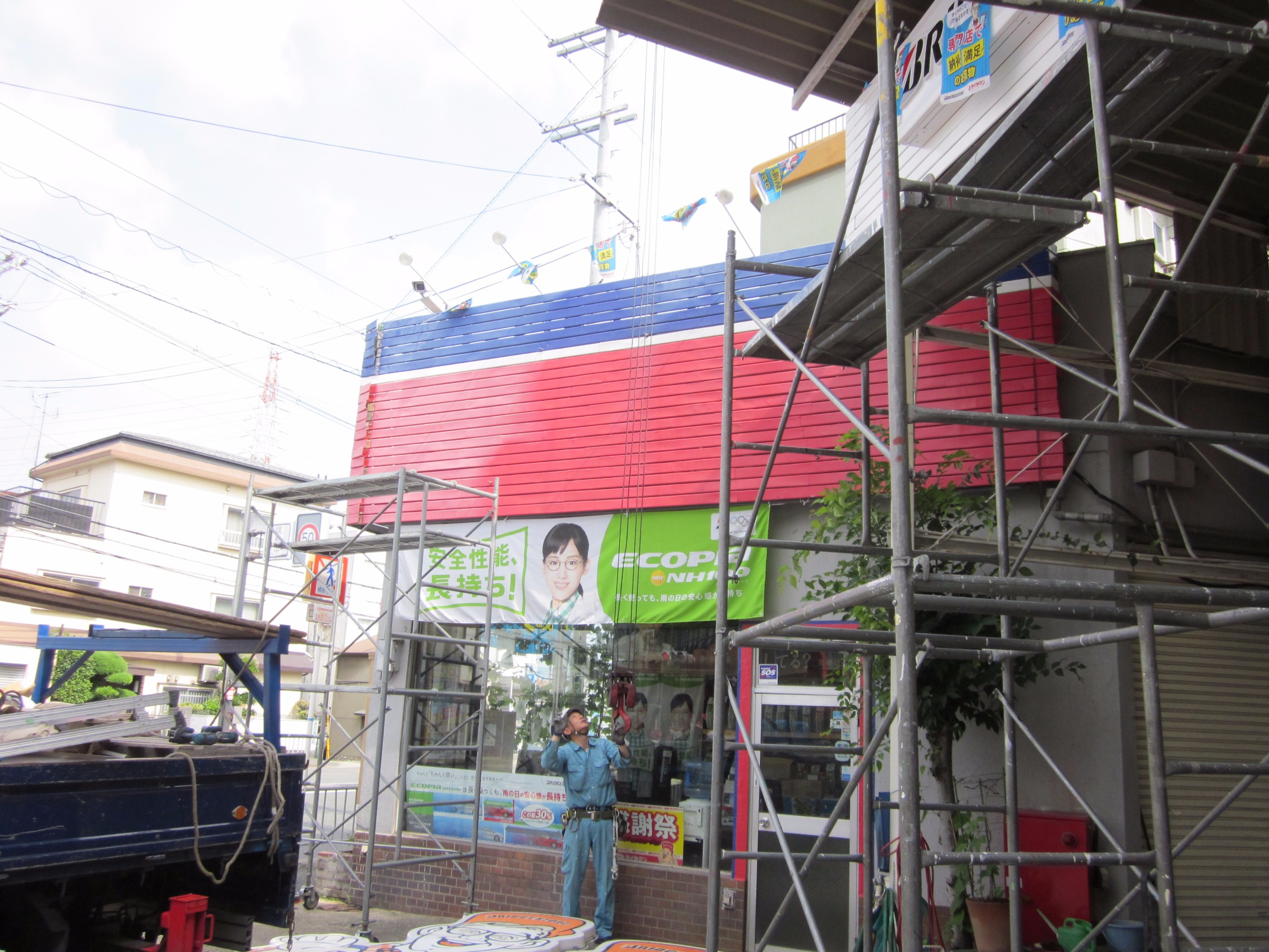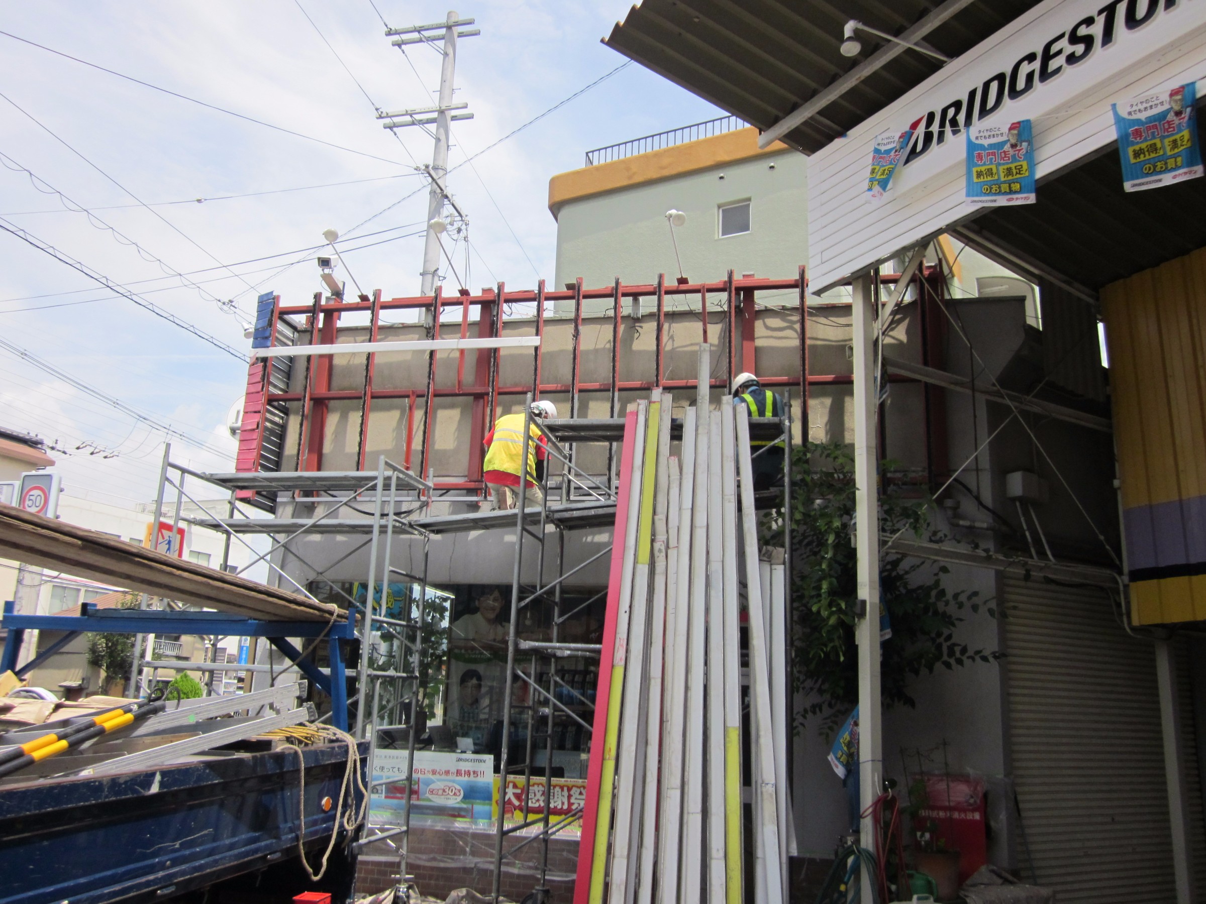 おれ達お父さんの店「ミスタータイヤマン高槻」の外装の塗り替えが始まりました。