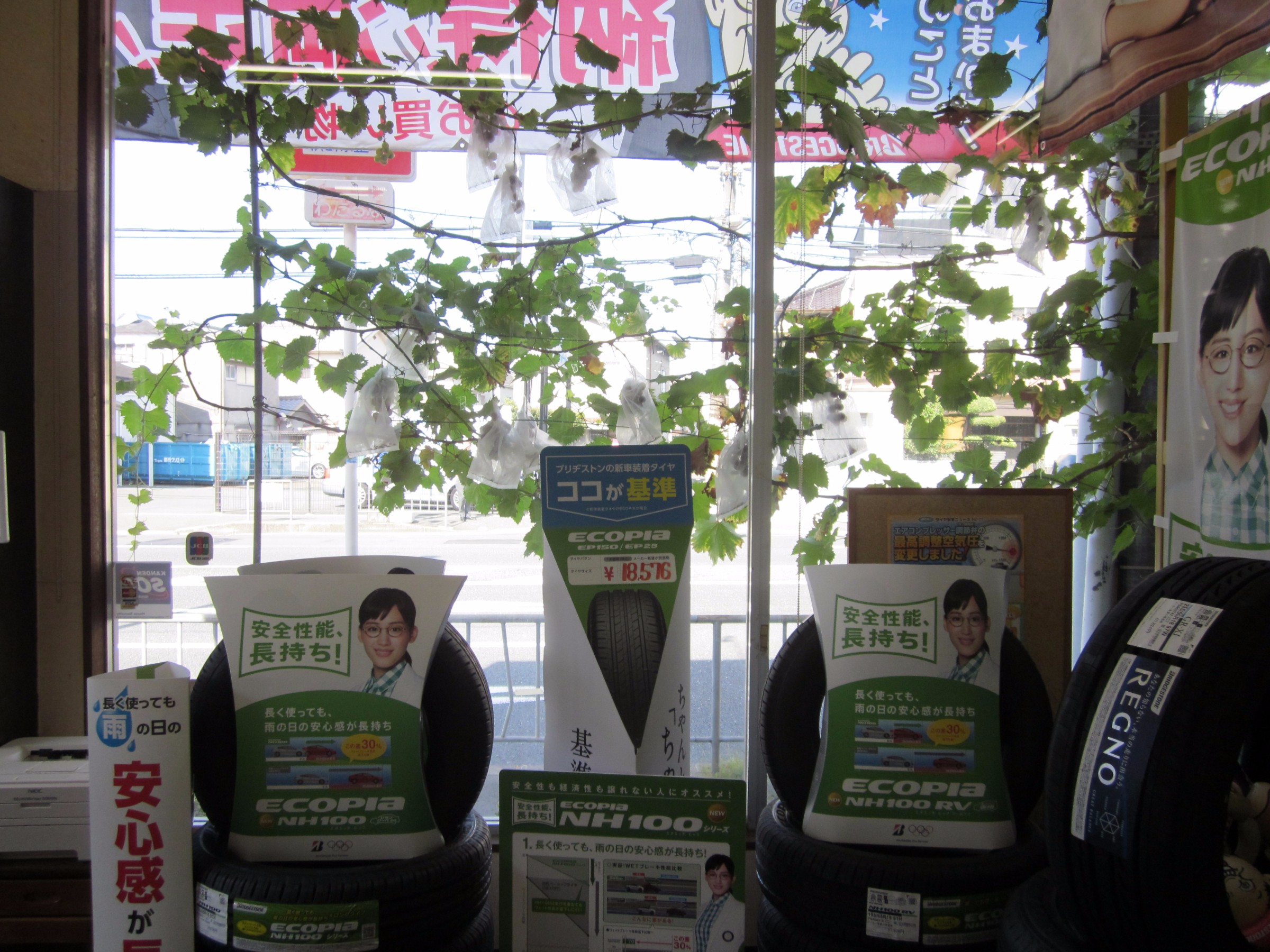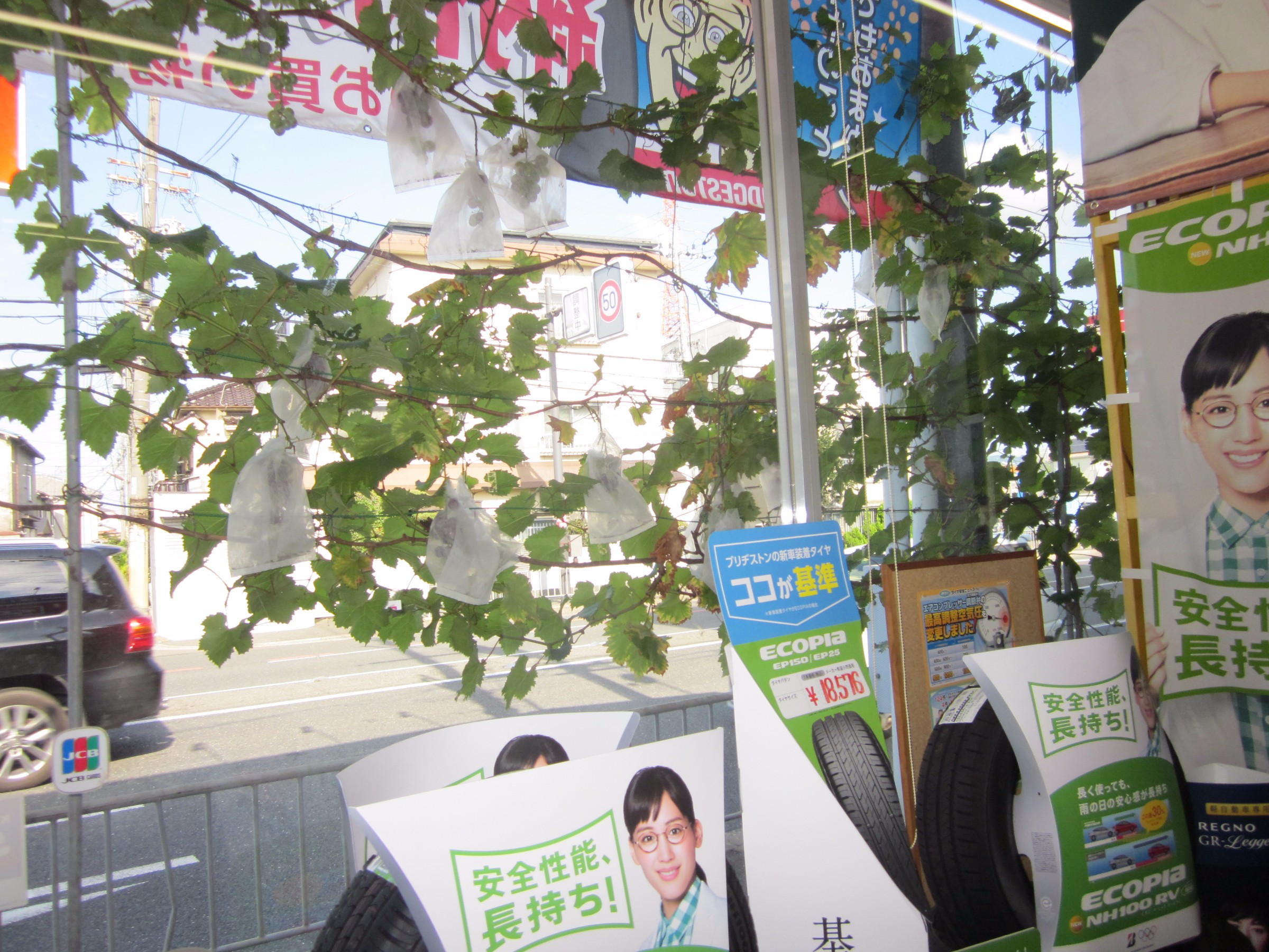 葉の隙間から、店内が見えるのと、環境に優しい店づくりになるように、植栽をしたのです。