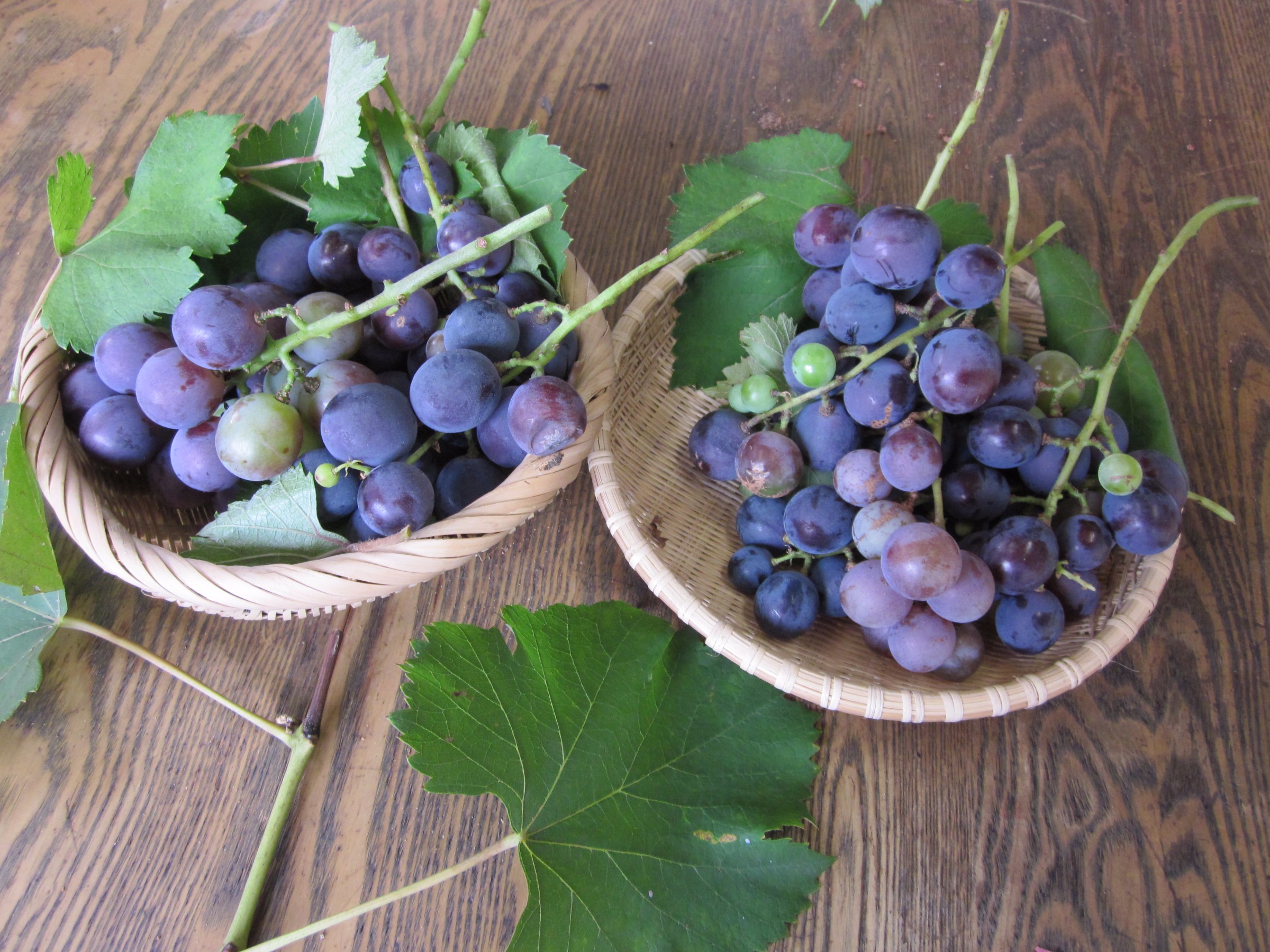 ブドウが色づいてきて、1回目の収穫をしました。