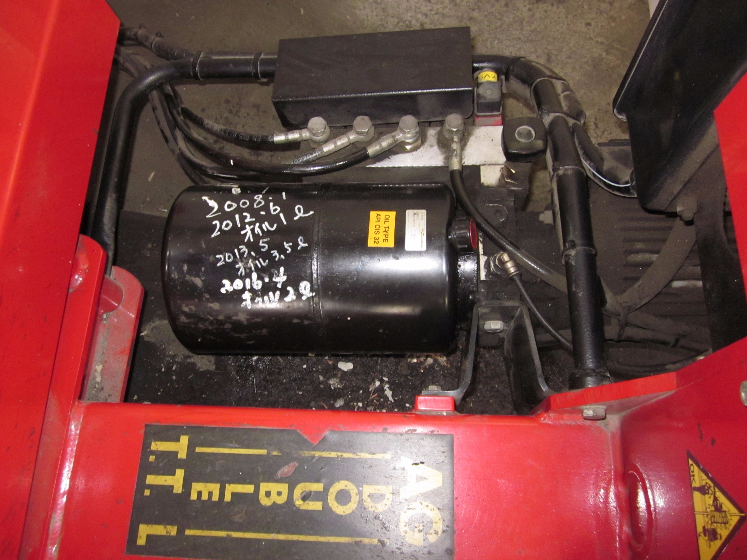 新しい油圧オイルを注入するのですが、メーカー指定のギアーオイルではなく、タービン油、油圧オイル