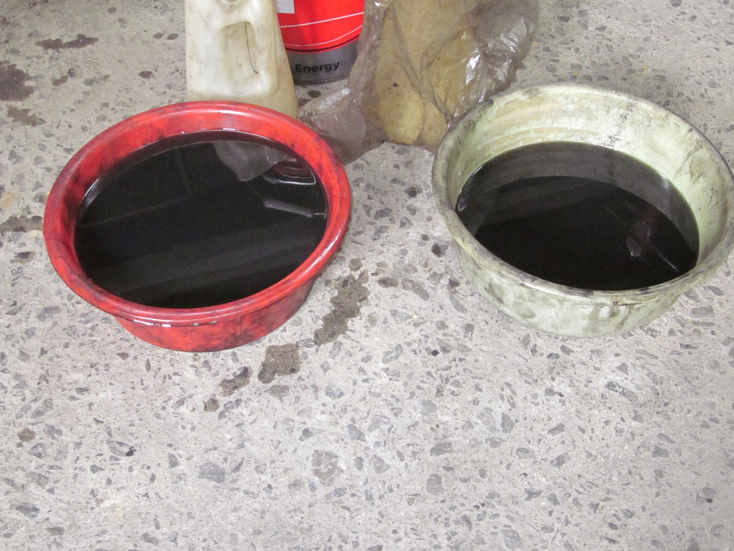 油圧オイルを抜き取ると、10年間一度も交換していないので真っ黒に汚れています。