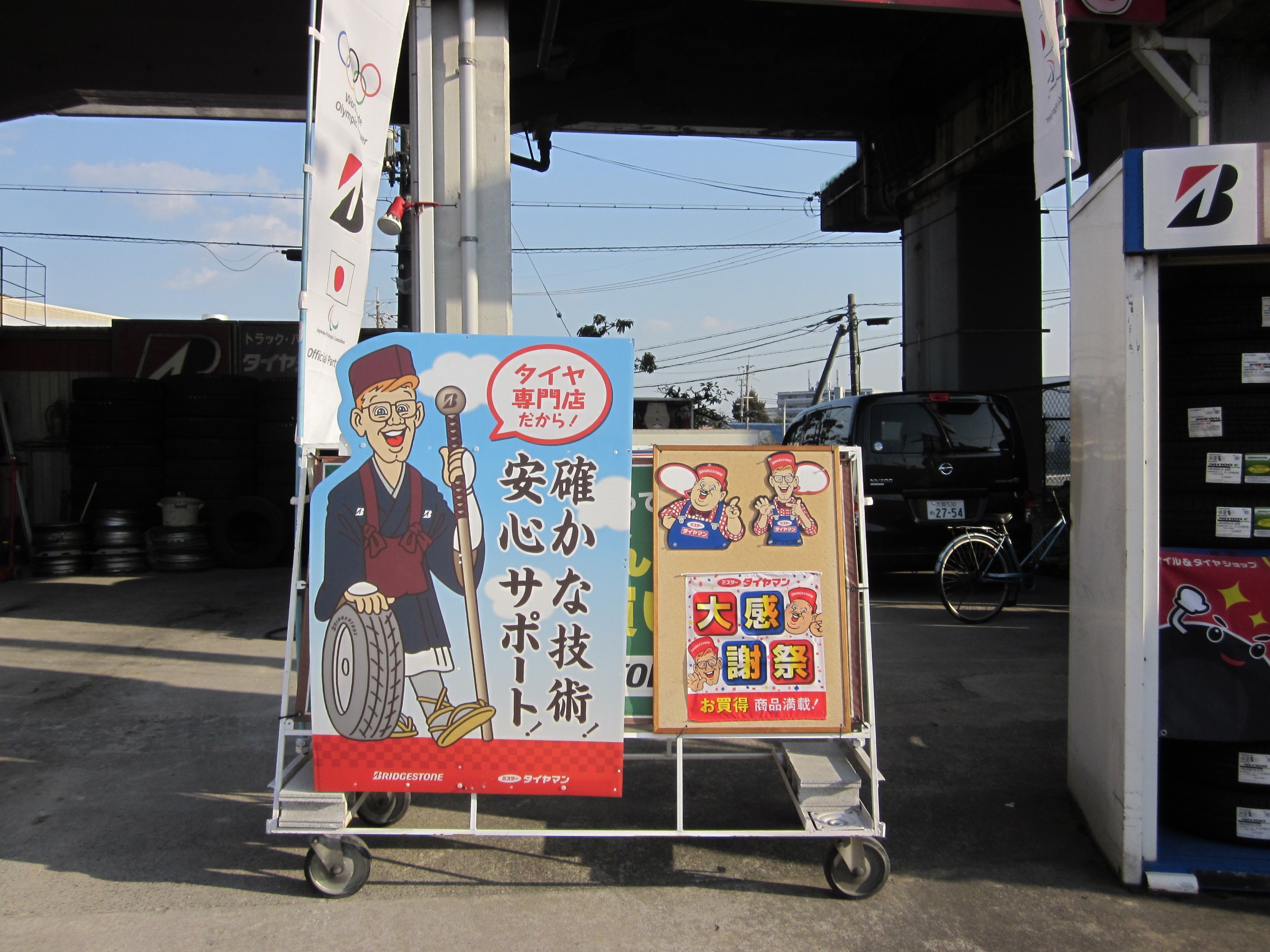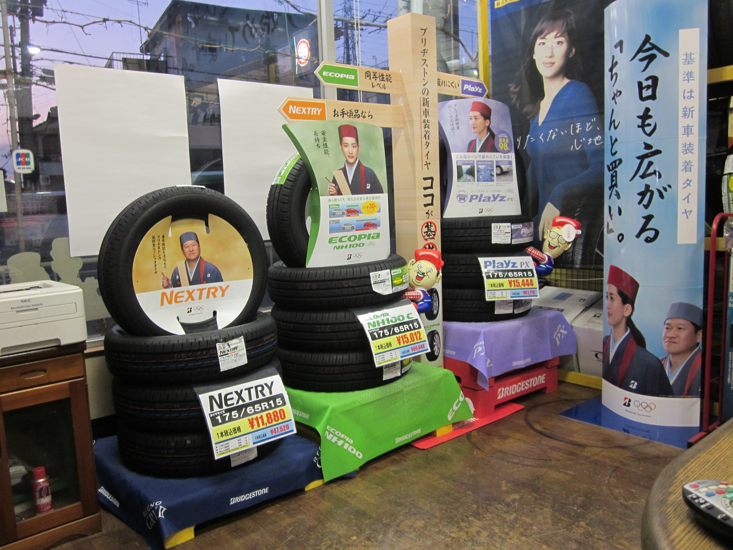 これからは春の「大感謝祭」セールに向けて、ブリヂストンタイヤから色んな飾りつけのグッズが