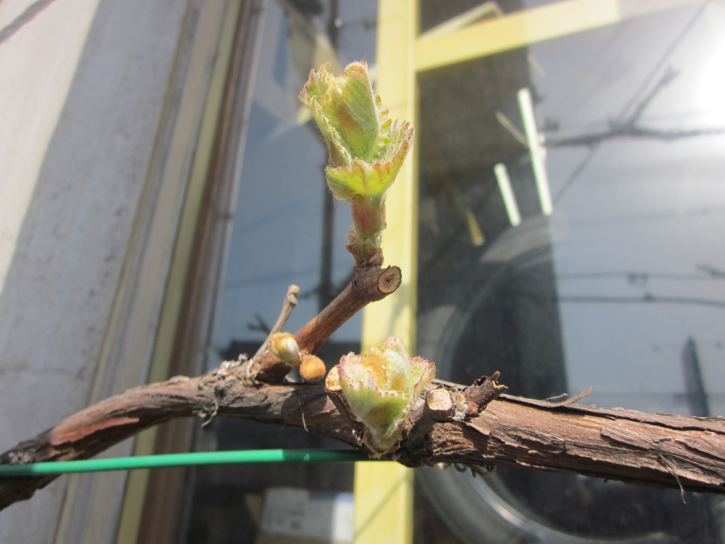 開花はまだですが、ブドウも新芽が出ました。