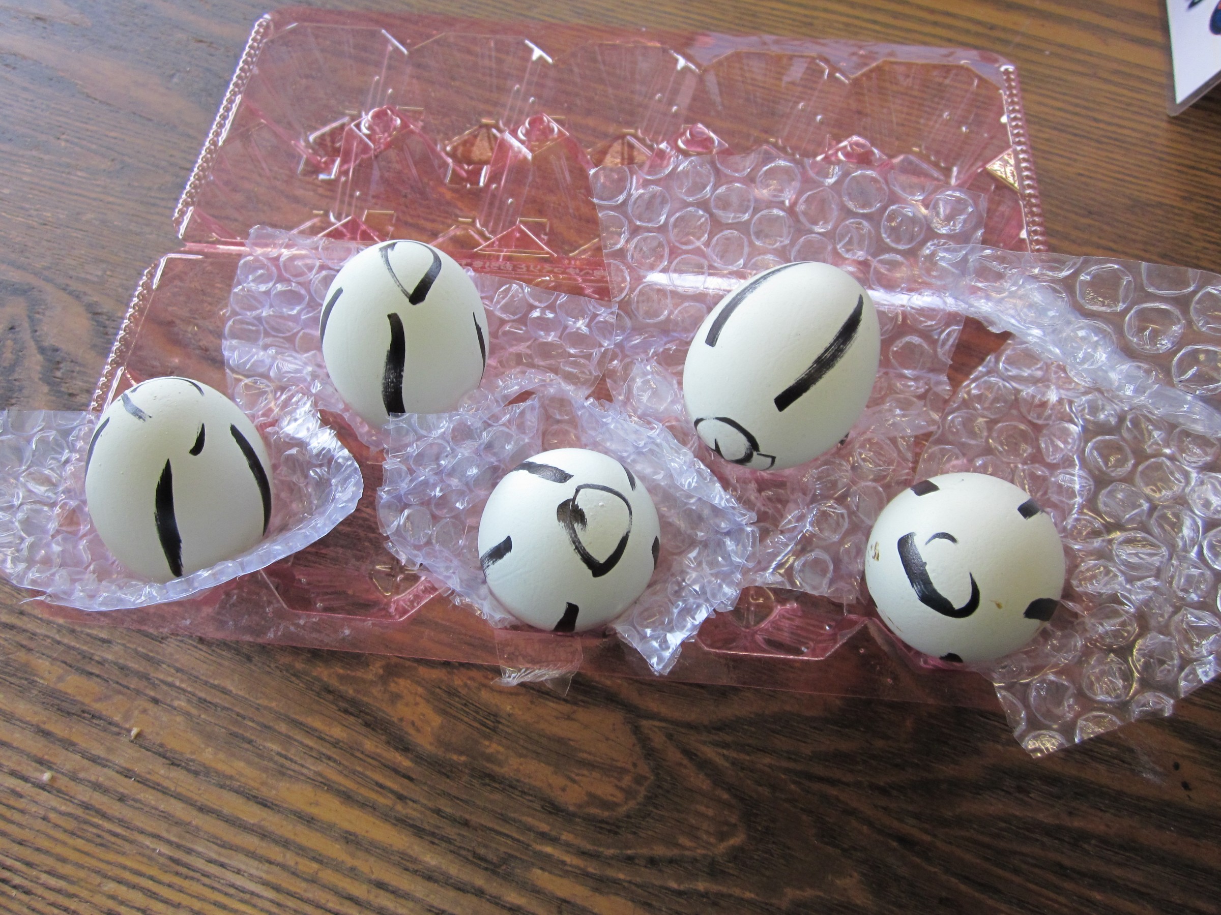 この印はあと1羽が生んだ卵と区別するために、付けているのです。