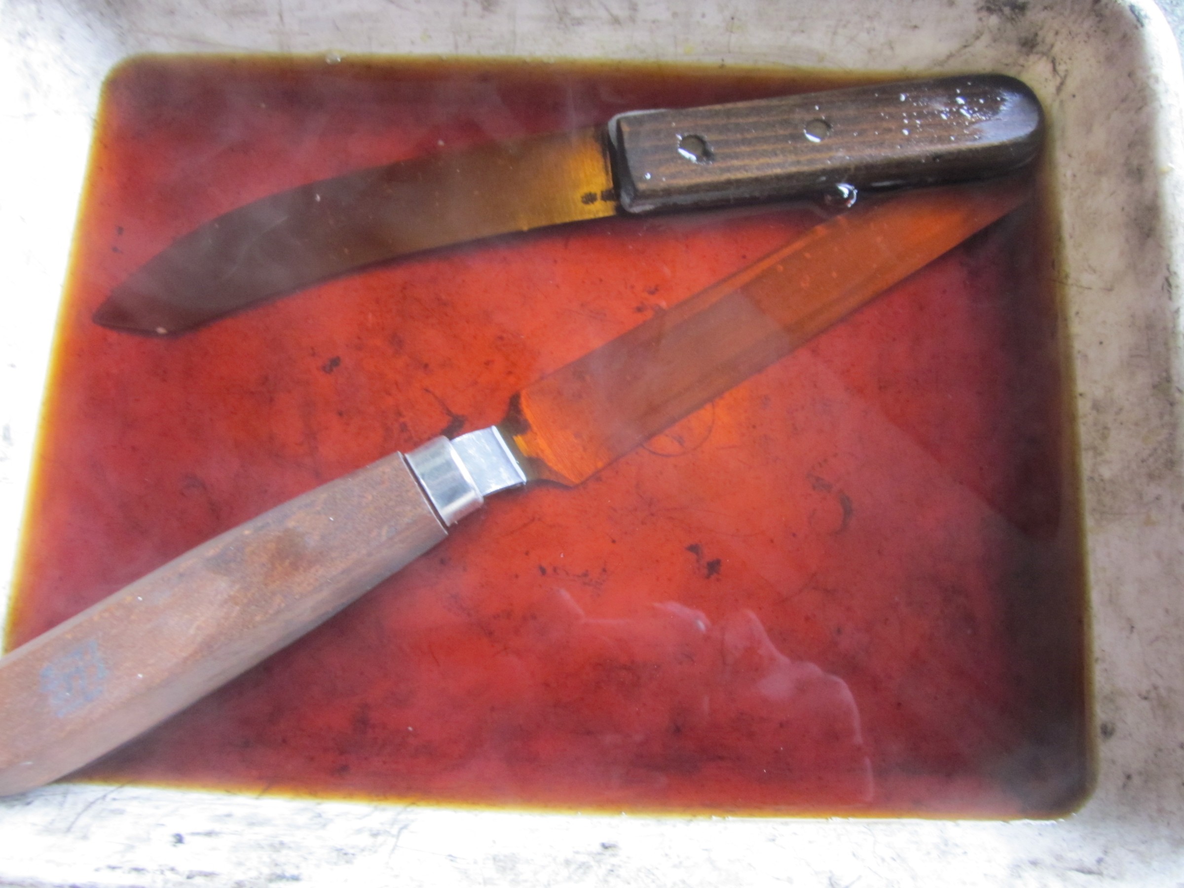 黒サビに転換しました、注意点はナイフを水平にしないで、ぶら下げておきましょう、