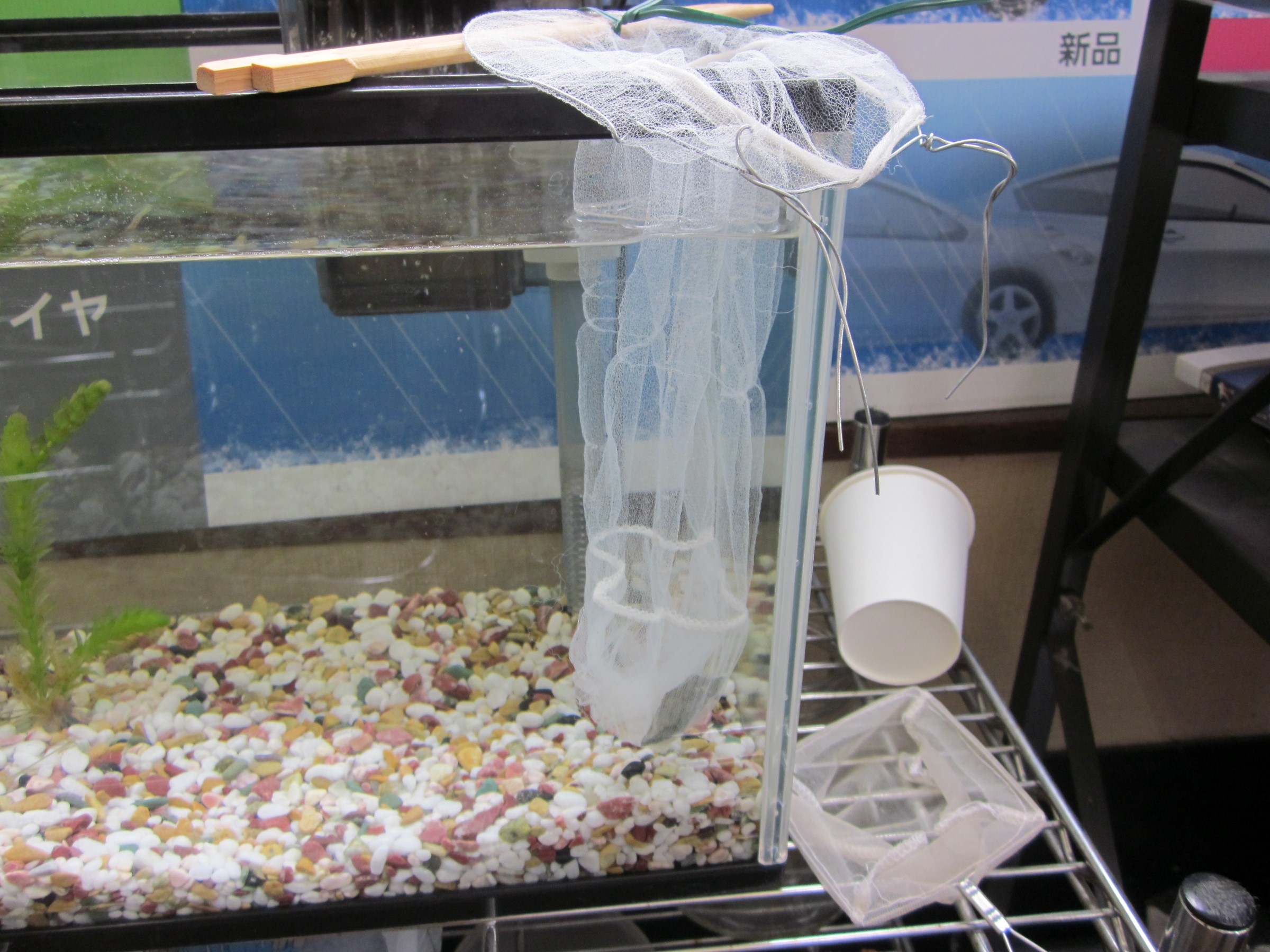 産卵が始まったようなので、小さい網目の袋に卵を移し替えて、観察してみようと思うのですが、