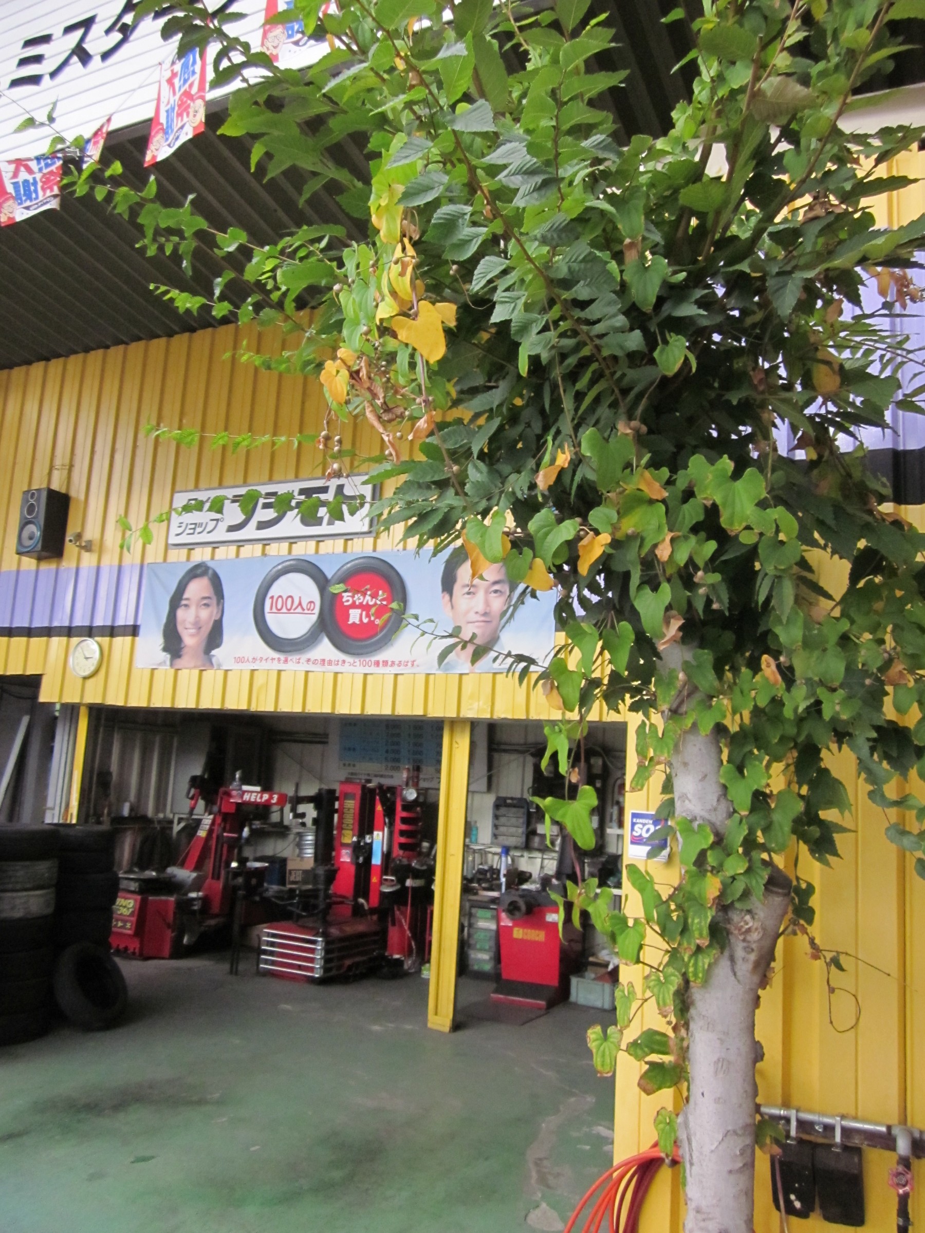 10月頃になると、ケヤキの落葉が始まるので、それまでに枝を切り払らはないと店内のあちらこちらに