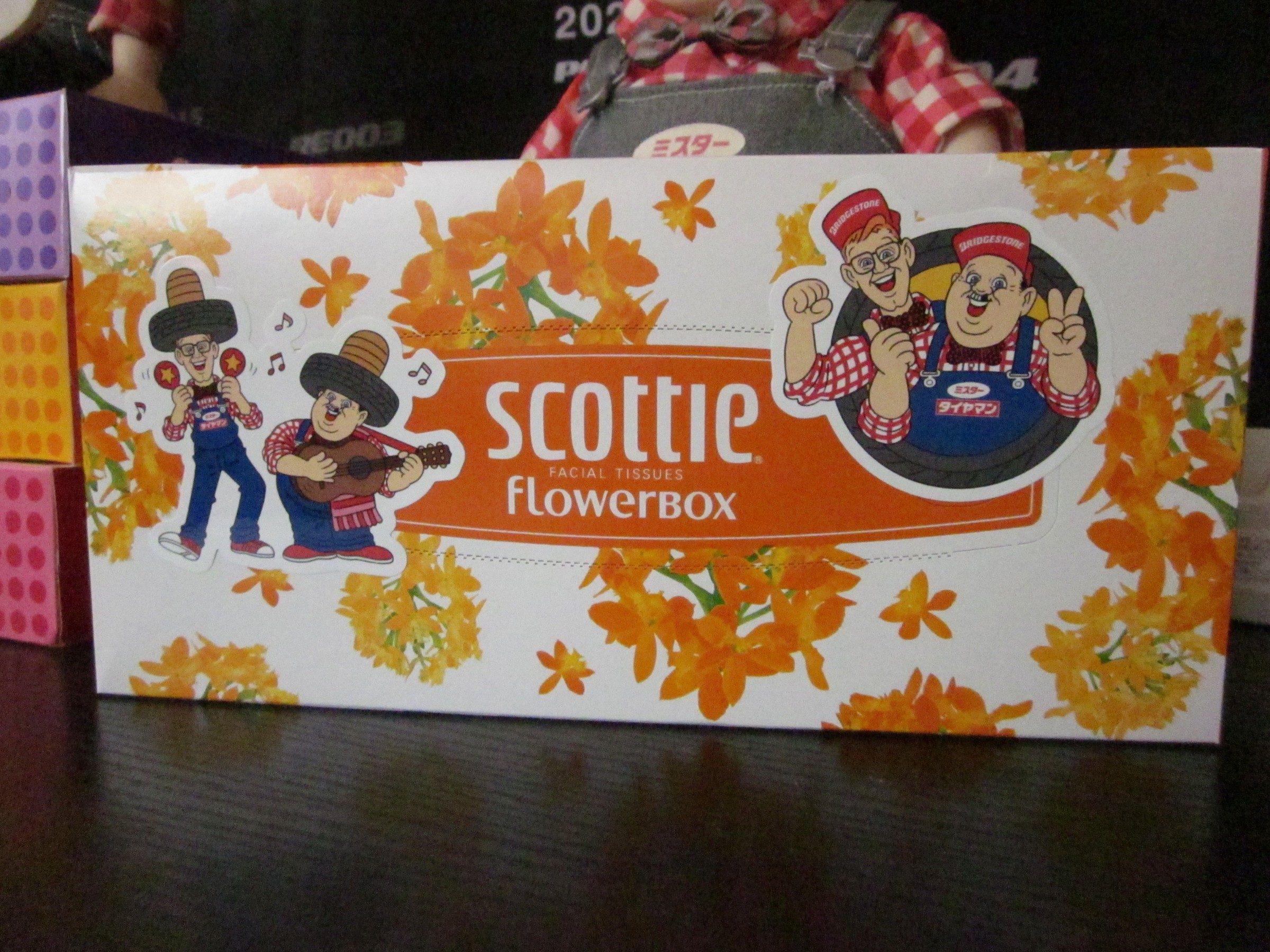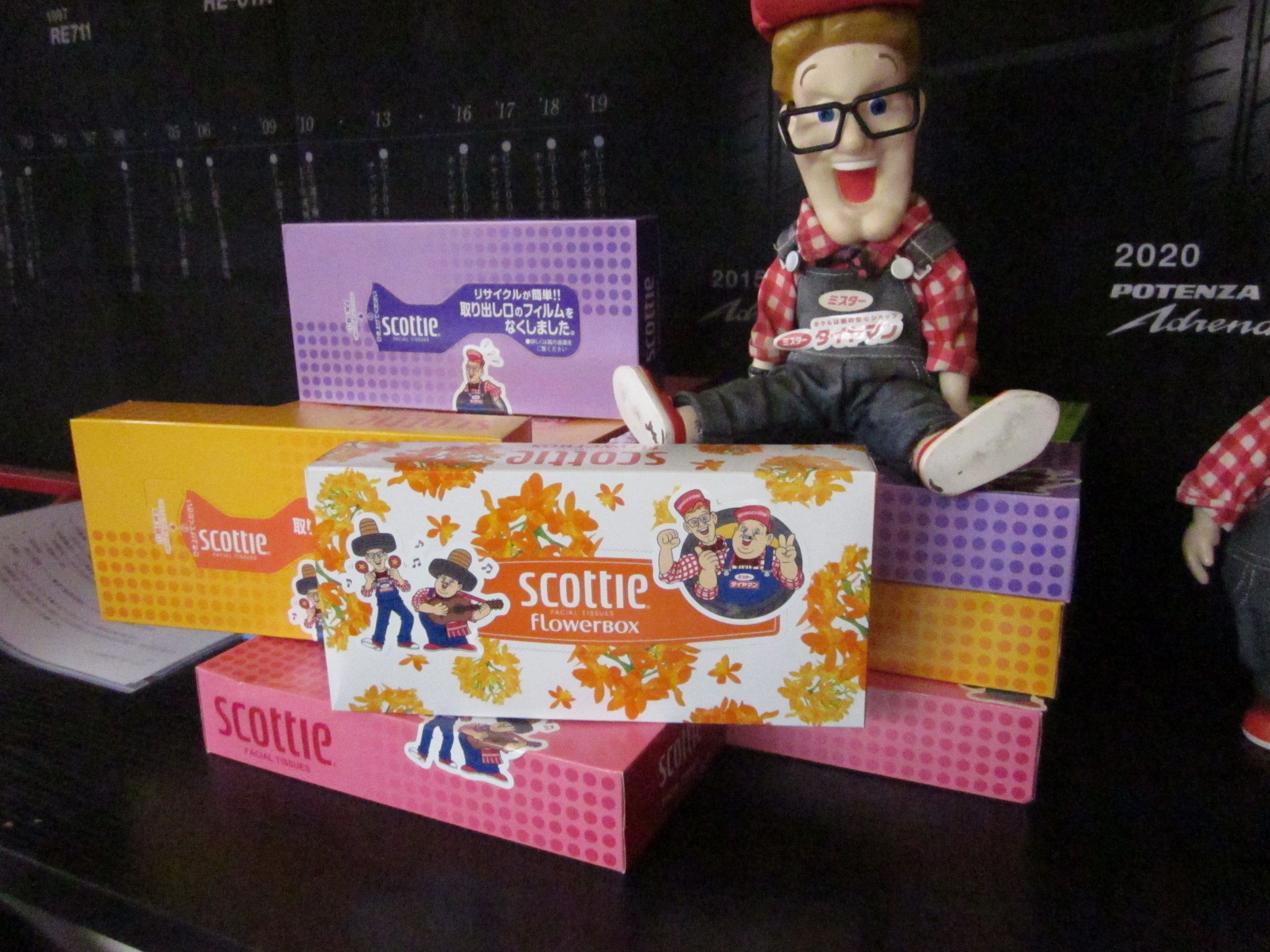 これでは、あまり面白くないので、箱にミスタータイヤマンのシールを貼ってみました。