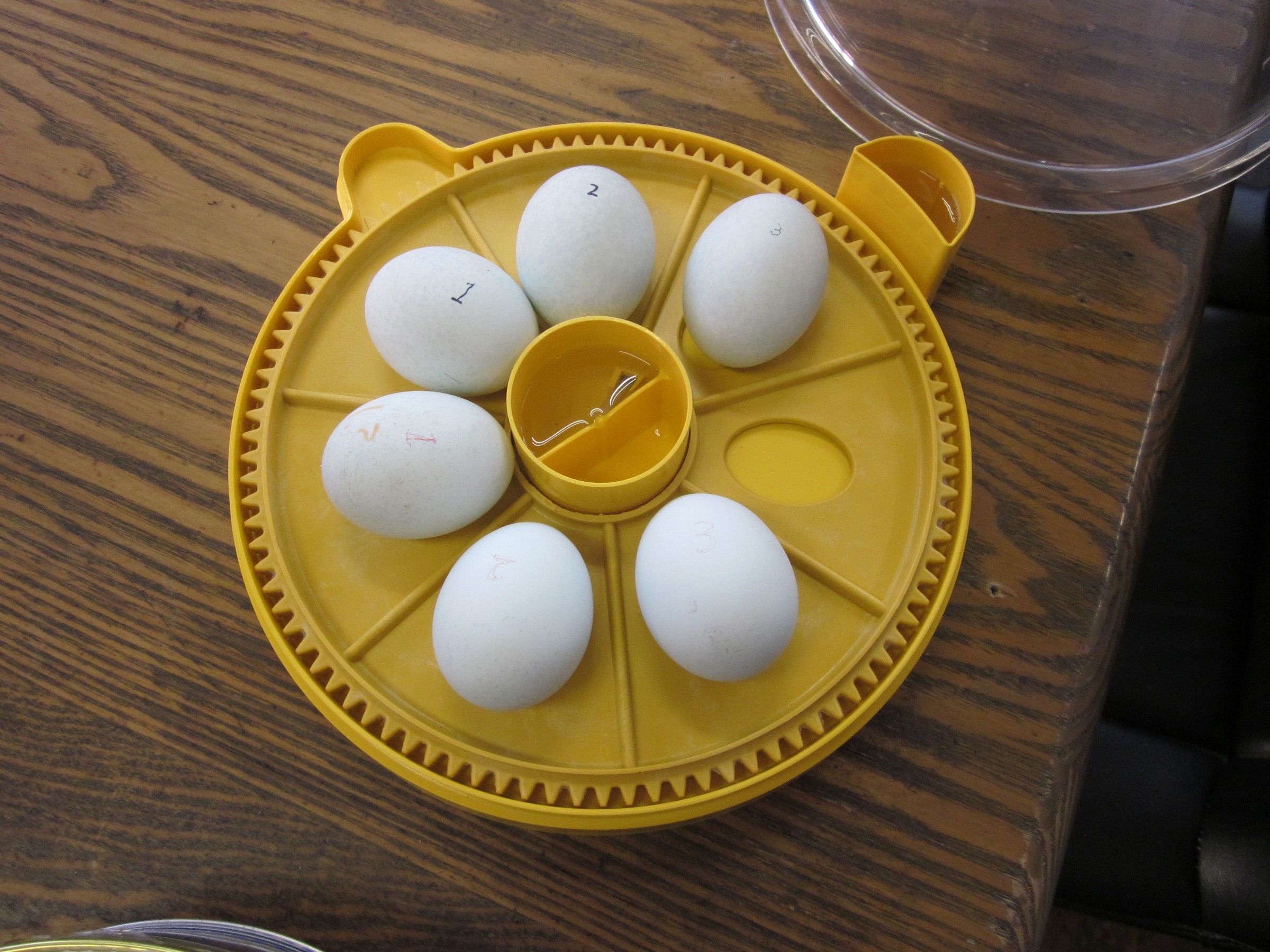常温と冷蔵庫で保存していた卵を3個づつ入れて、孵化をさせてみます。