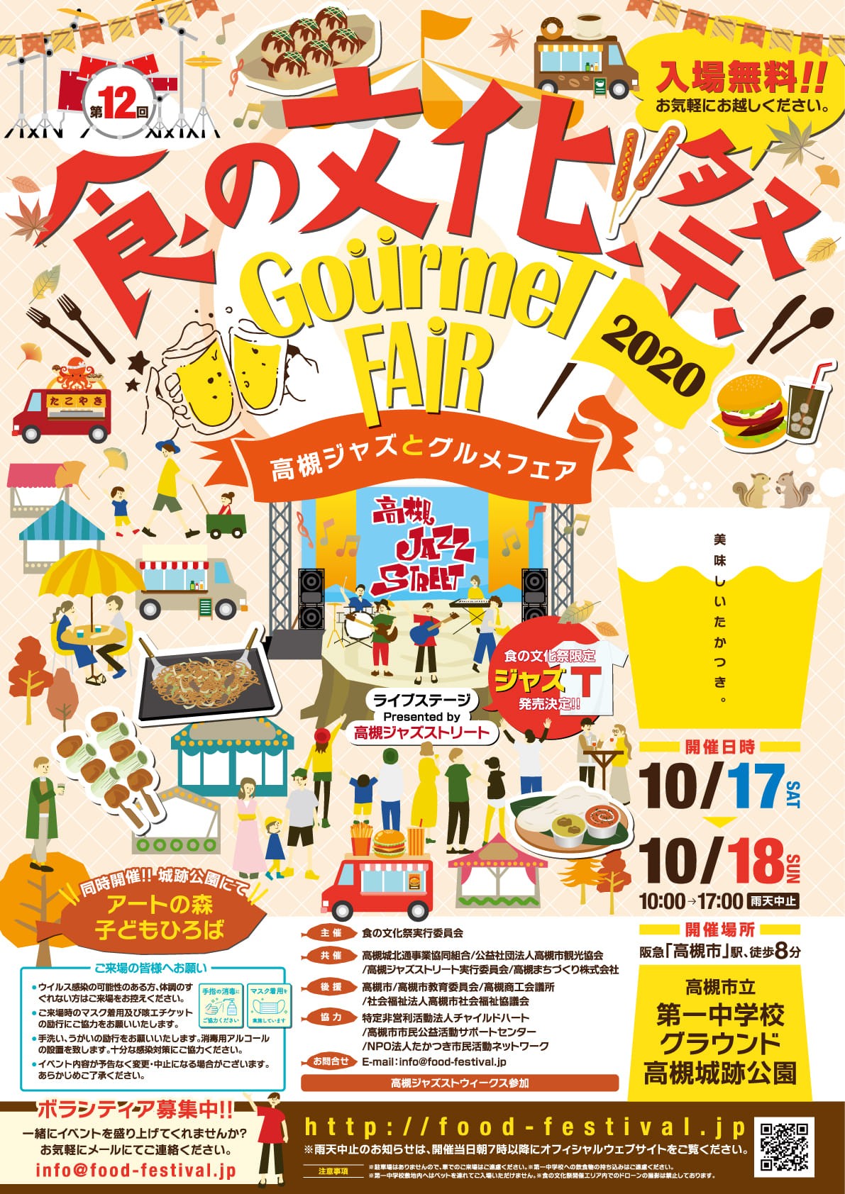 高槻市内の市民ホール、学校、城跡公園で食の文化祭、高槻ジャズストリートが開催されました。