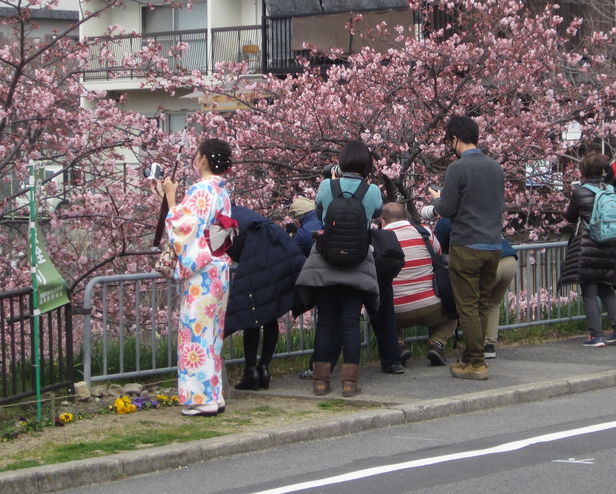 しかし、中にはカメラ愛好家でしょうか、モデルさんと一緒に桜をバックに写真を撮っているのを