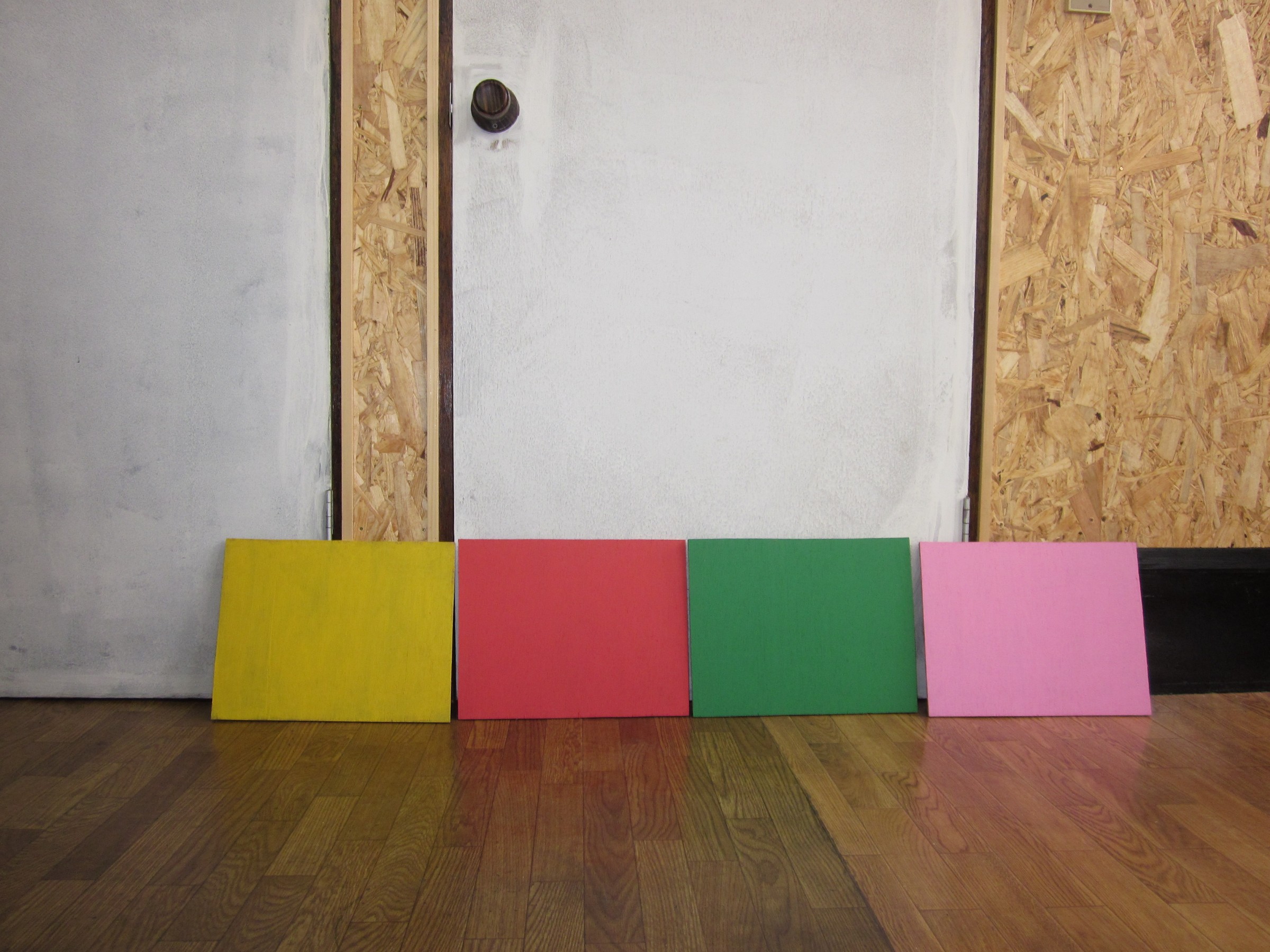 見本の塗料を取り寄せ、板切れに塗って並べてみたのです。