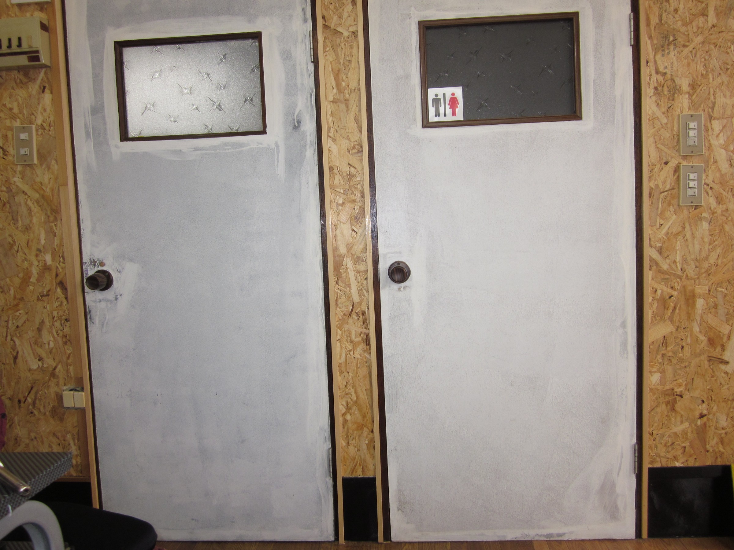 最後の仕上げは、トイレと厨房のドアーの色を何色にするか、迷っています。