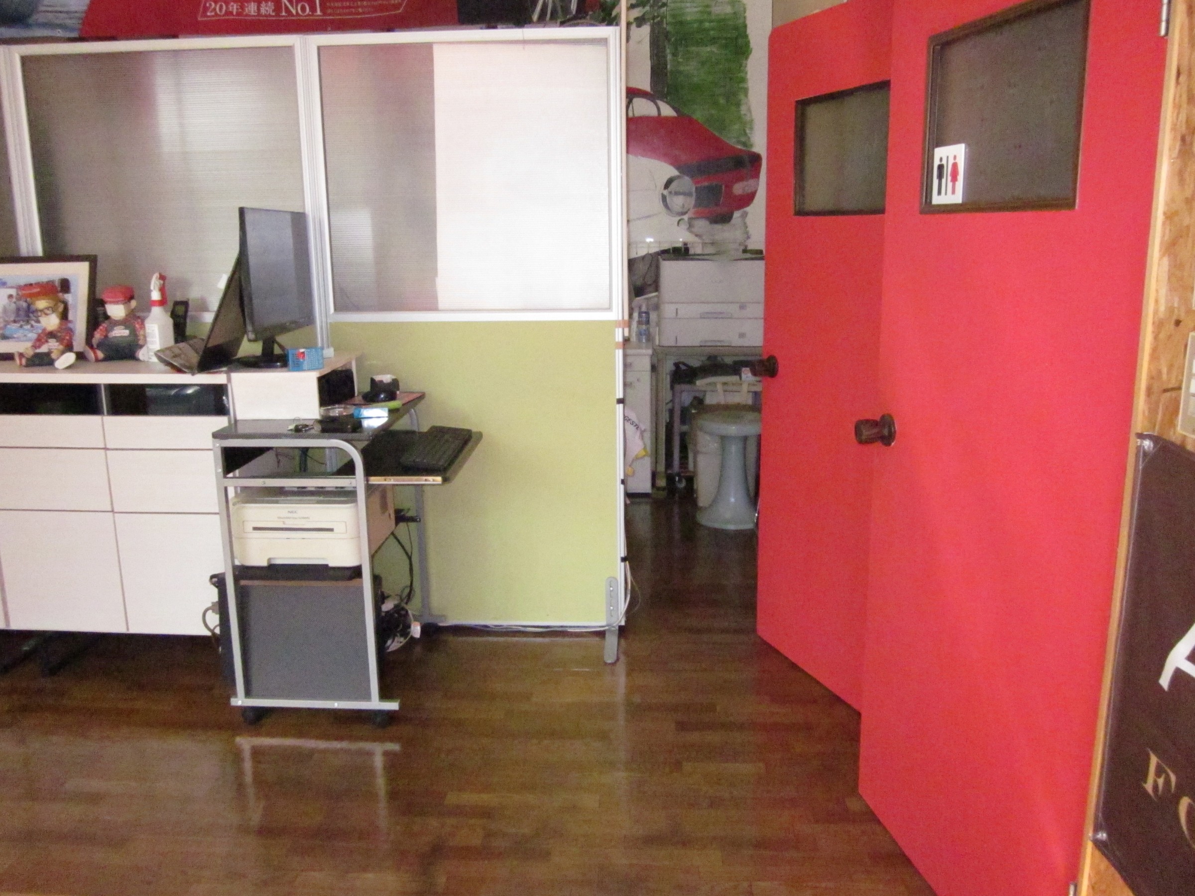 事務スペース、接客スペース、手洗い、トイレ、台所 出窓