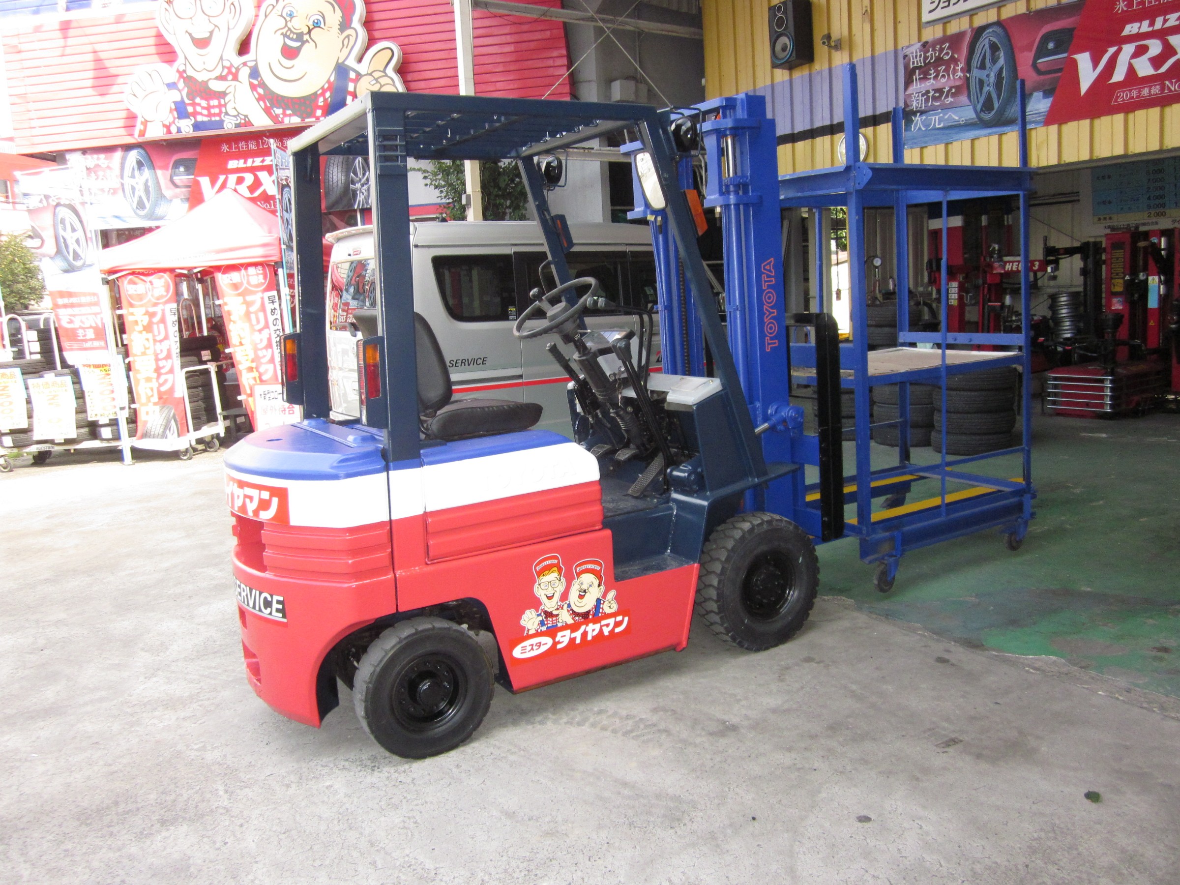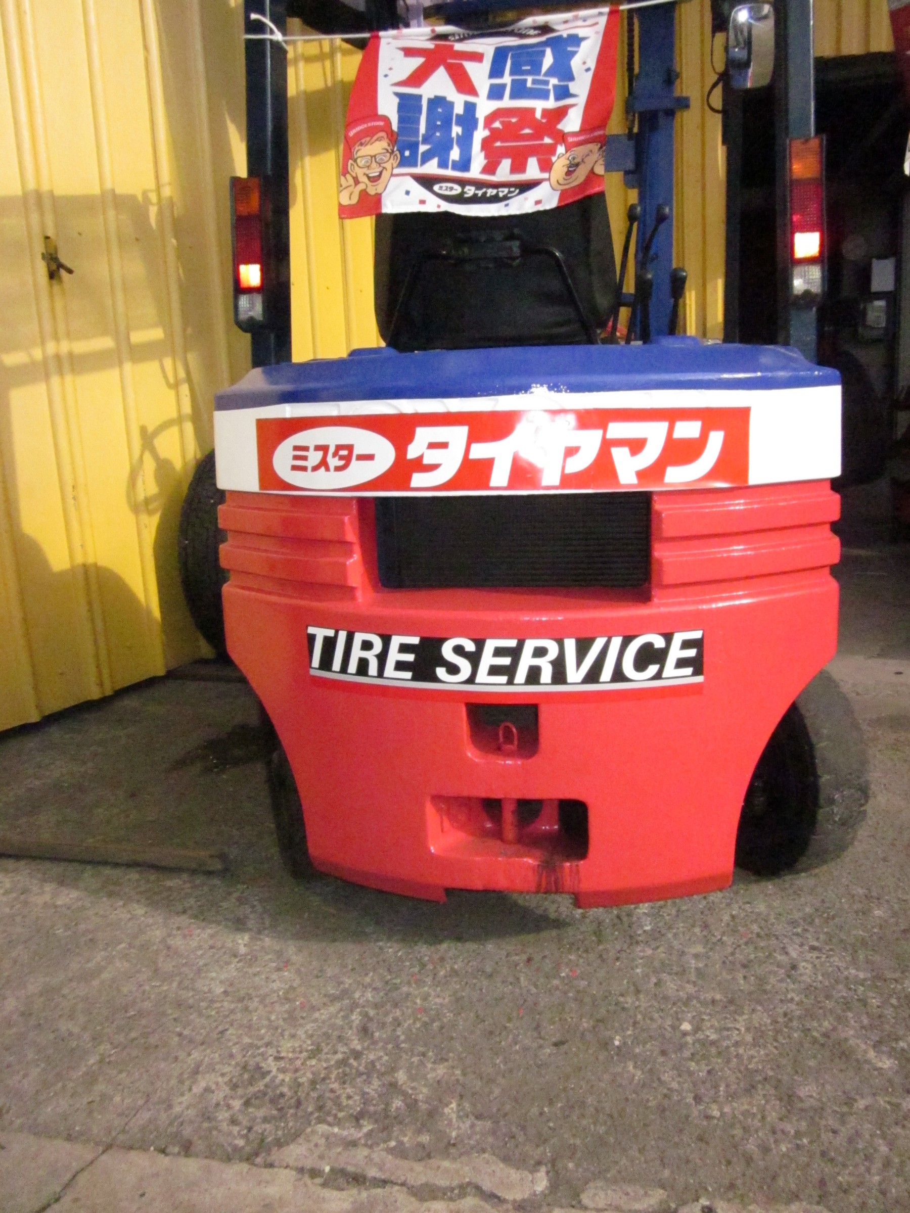 おれ達お父さんの店「ミスタータイヤマン高槻」で使っていたフォークリフトが使えなくなり