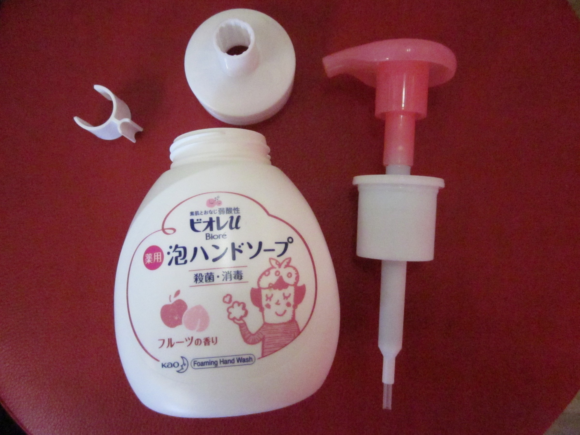 ハンドソープのキャップの出っ張りを切り取り平らにして、ハケとキャップをビスで固定し