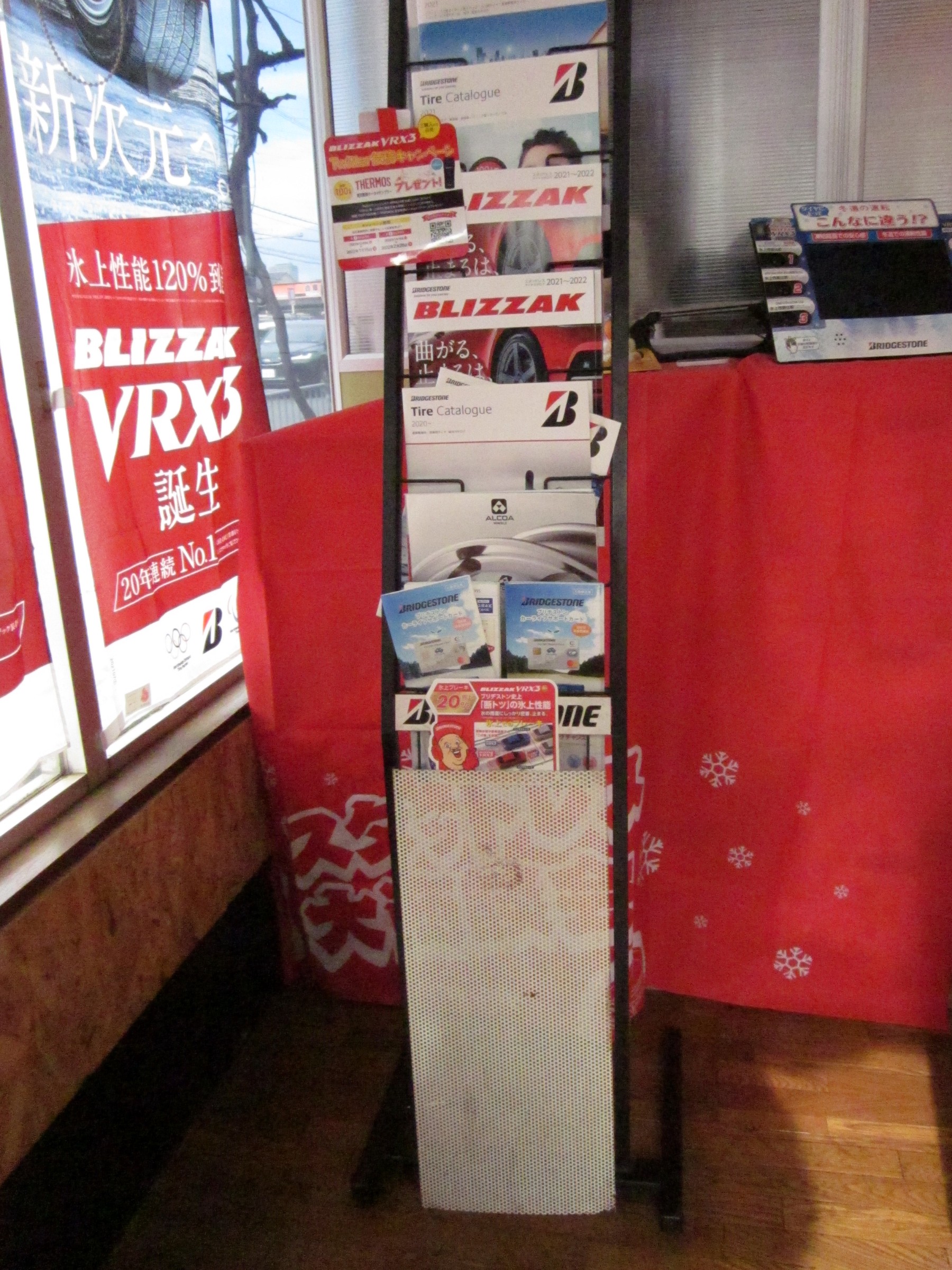 おれ達お父さんの店「ミスタータイヤマン高槻」にカタログを入れるラックがあります。