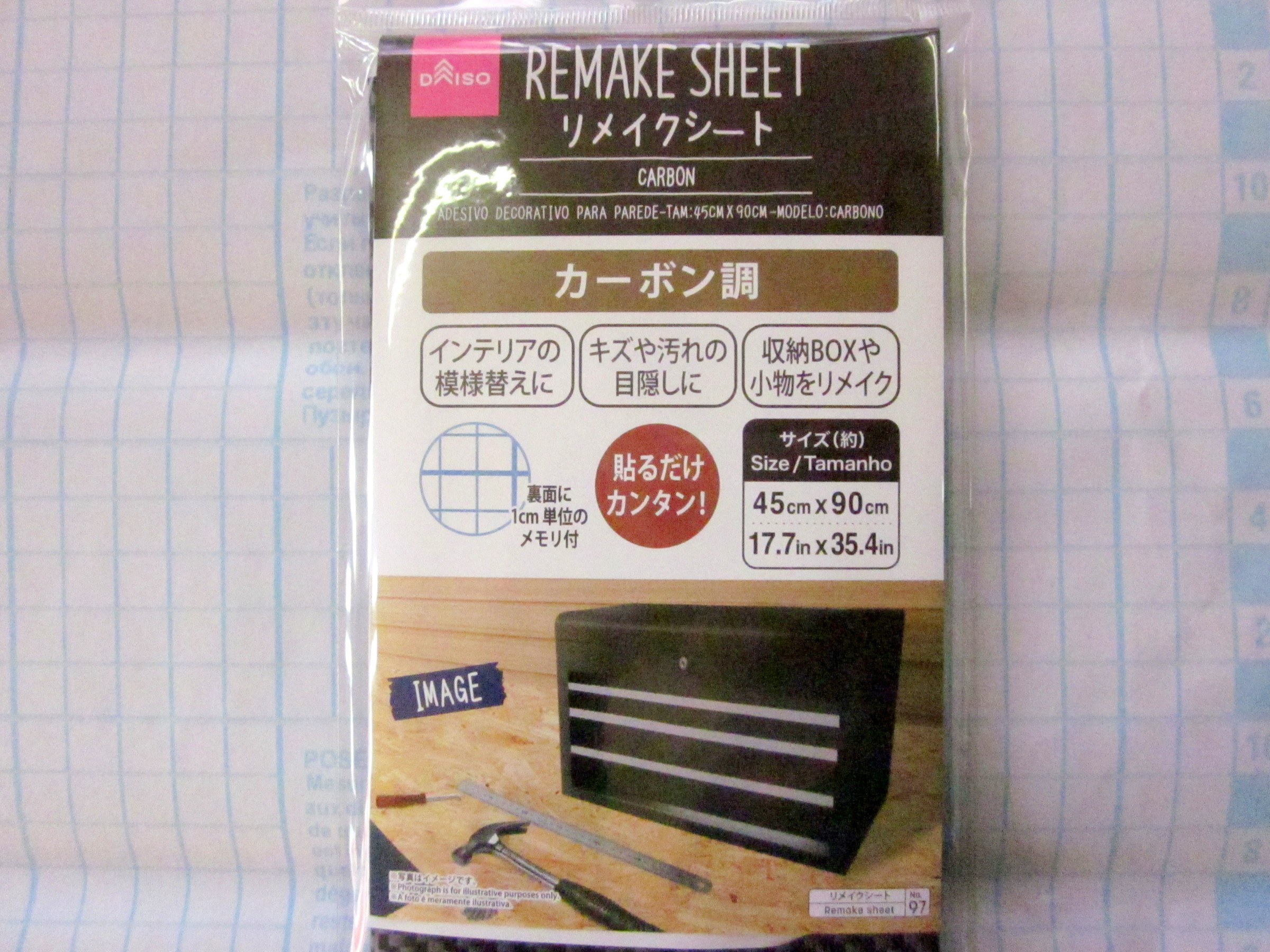 100均のダイソーでリメイクシートを買い、貼り付けてみます。