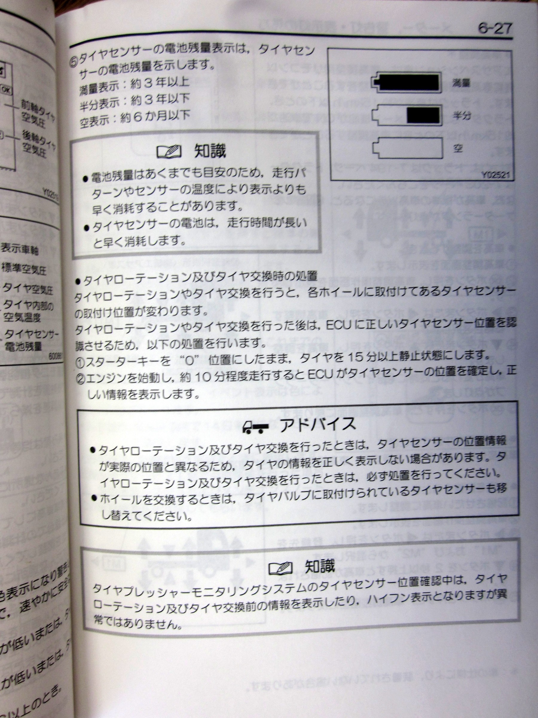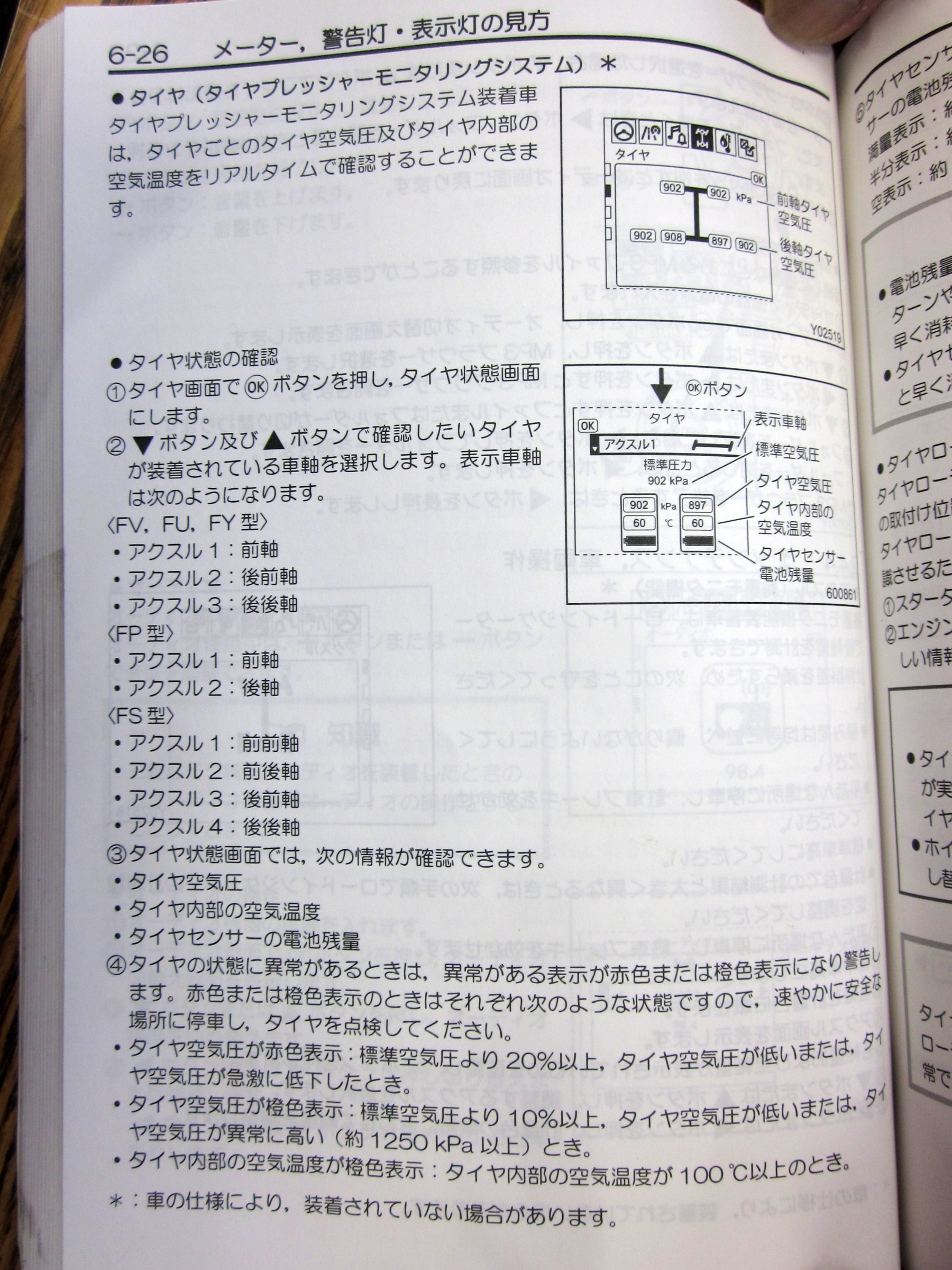 5センチぐらいある分厚い取り扱い説明書をお借りして、空気圧センサーの取り扱いのページを広げてみると